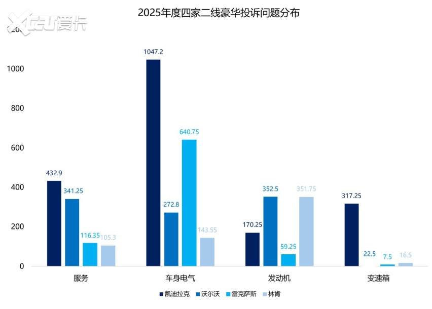 不难看出,2025年凯迪拉克投诉基数最大、沃尔沃增速最猛,雷克萨斯和林肯的表现则相对可控。