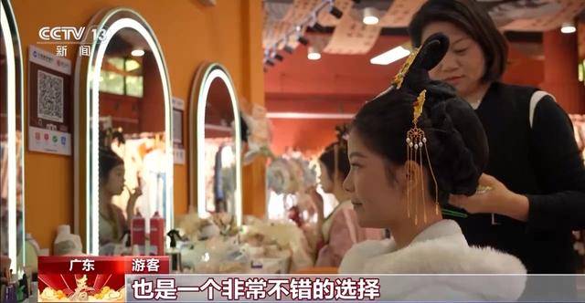 汉服出租经营户:假期期间每天都有几百个客人过来化妆,特别是年轻的女孩子。穿上古代的服装就好像穿越了,还能偶遇到剧组当个群演,挺开心的。